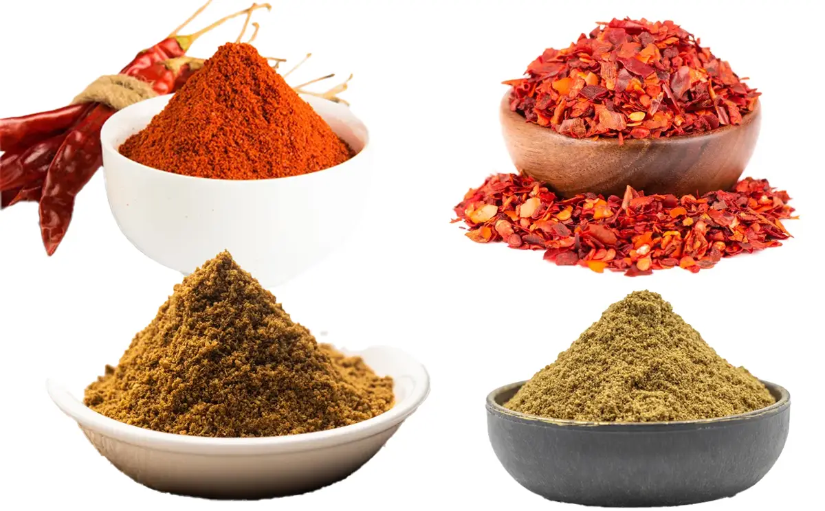 Chilli Powder (various heat levels and color profiles) | Turmeric Powder (high-curcumin varieties available) | Cumin Powder | Custom Ground Spices (processed to specification) Coriander Powder | Pepper Powder and other Select Spice Powders as per client requirement